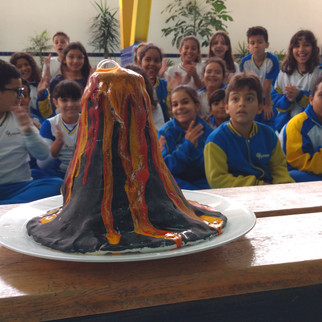 A proposta da atividade era que os estudantes pudessem observar e compreender algumas reações químicas que resultariam em um espetáculo semelhante à “erupção de um vulcão”. Para isso, organizados em grupos e orientados pela professora responsável pela disciplina, os jovens cientistas confeccionaram um pequeno vulcão, utilizando copos descartáveis, argila e corante. Foi sensacional!